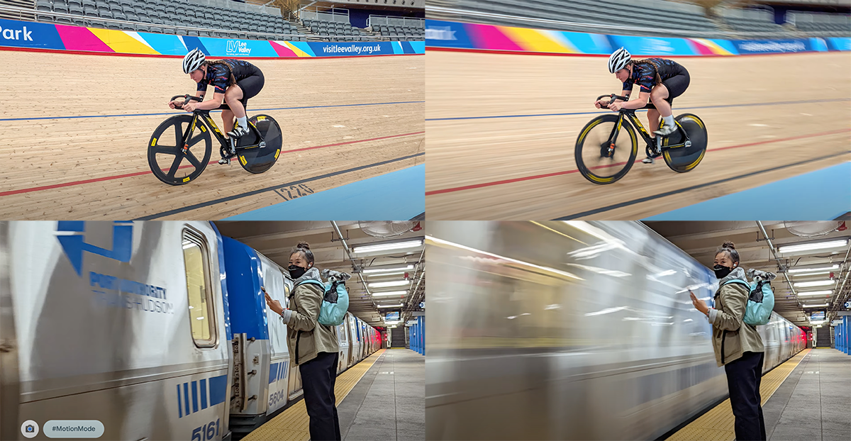 "Motion Blur"는 장노출(셔터스피드 속도를 길게 설정)을 통해 얻을 수 있는 사진적 효과를 AI로 구현해 주는 기능이다. 역동적인 움직임을 사이클이나 지하철과 같은 이미지에 적용하고, 폭포와 같은 자연 풍경이나 도시의 야경처럼 전문 장비나 기술을 통해서만 찍을 수 있던 사진들을 AI를 활용해 얻을 수 있게 된다고 한다.