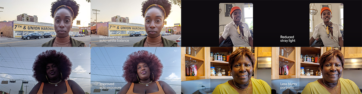 "Real Tone"은 지난 5월 'Google I/O 2021'에서도 소개되었던 내용으로 사진에서 '정확한 색'이 구현되도록 하는 기능이다. 이를 위해 구글에서는 '전문가'들과의 협업을 통해 다양한 환경에서 사진을 촬영하고 이를 바탕으로 화이트밸런스(WB), 노출값(Exposure) 등을 자동으로 보정하는 알고리즘을 개발하였다. 이를 통해 '자동 화이트 밸런스 조정'이나 '자동 노출값', '빛 산란 줄이기', '인물사진 모드에서 덜 흐리게 하기' 등이 개선되었다고 소개했다.