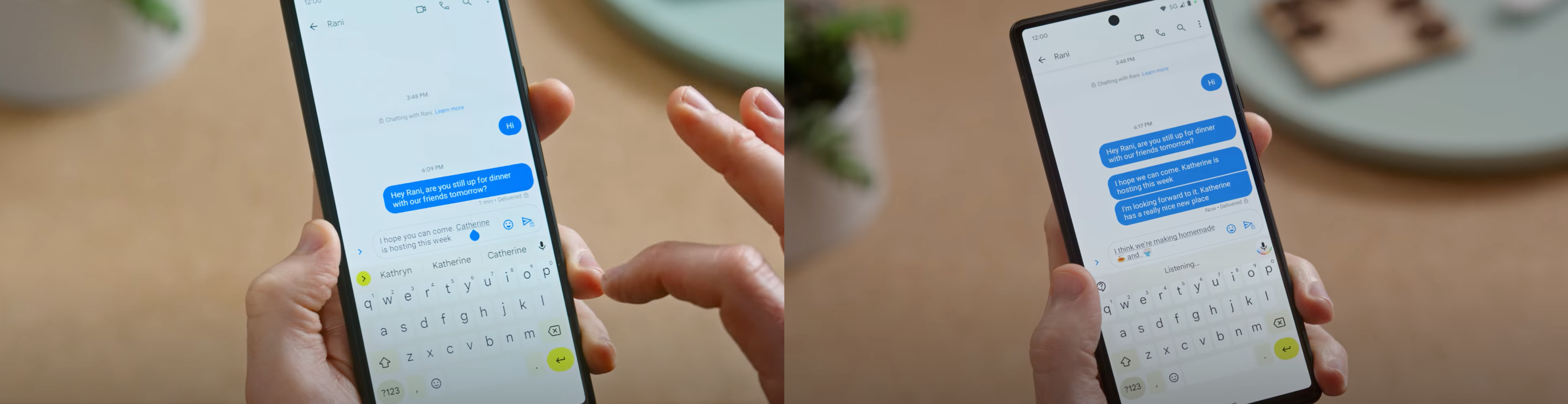 음성인식 관련 기능들은 Tensor를 통한 음성인식 모델을 직접 디바이스에 탑재(on device)하여 저전력으로 사용 가능하다는 점이 강조되었고 "Voice Typing", "Live Translate", "Interpreter mode"가 주요 기능으로 소개 되었다.