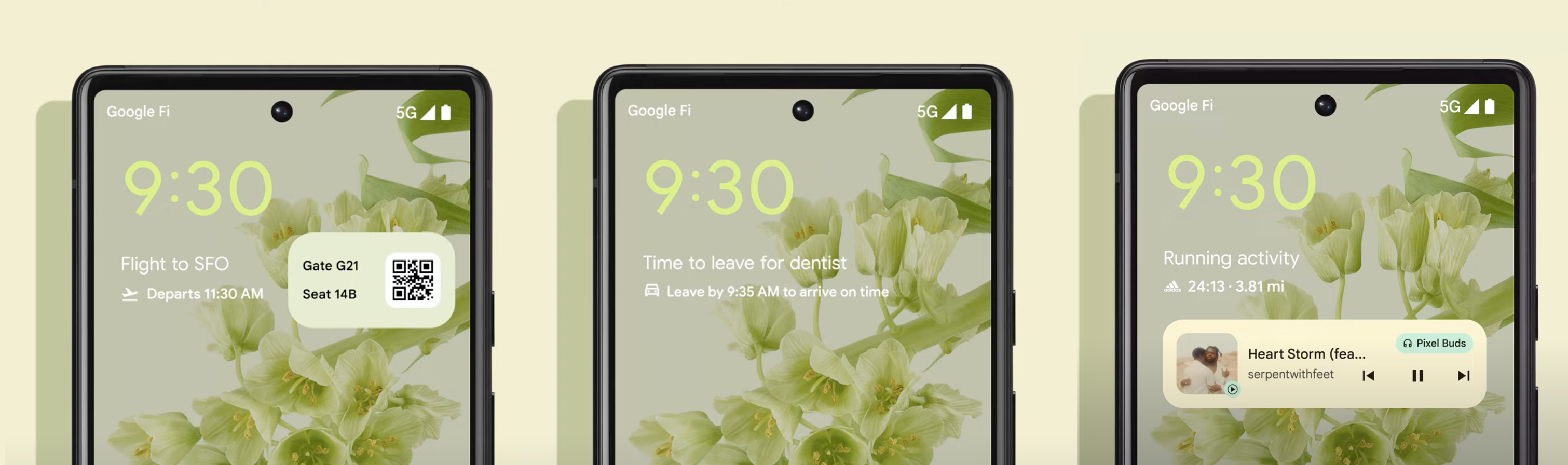 이어 "At a glance"라는 기능을 통해, 사용자에게 필요한 정보를 자동으로 인식해서 '잠금화면'을 통해 제공되는데, 여행(비행기) 스케쥴이 있으면 QR 항공권을, 캘린더에 약속이 있다면 언제 출발해야 하는지를, 마지막으로 운동을 하면 운동정보 트래킹과 노래 재생까지 함께 나오는 것처럼, 사용자에게 필요한 시점에 필요한 기능들을 자동으로 제공한다는 점에서 정말 편리하게 느껴질 것이라 생각된다.