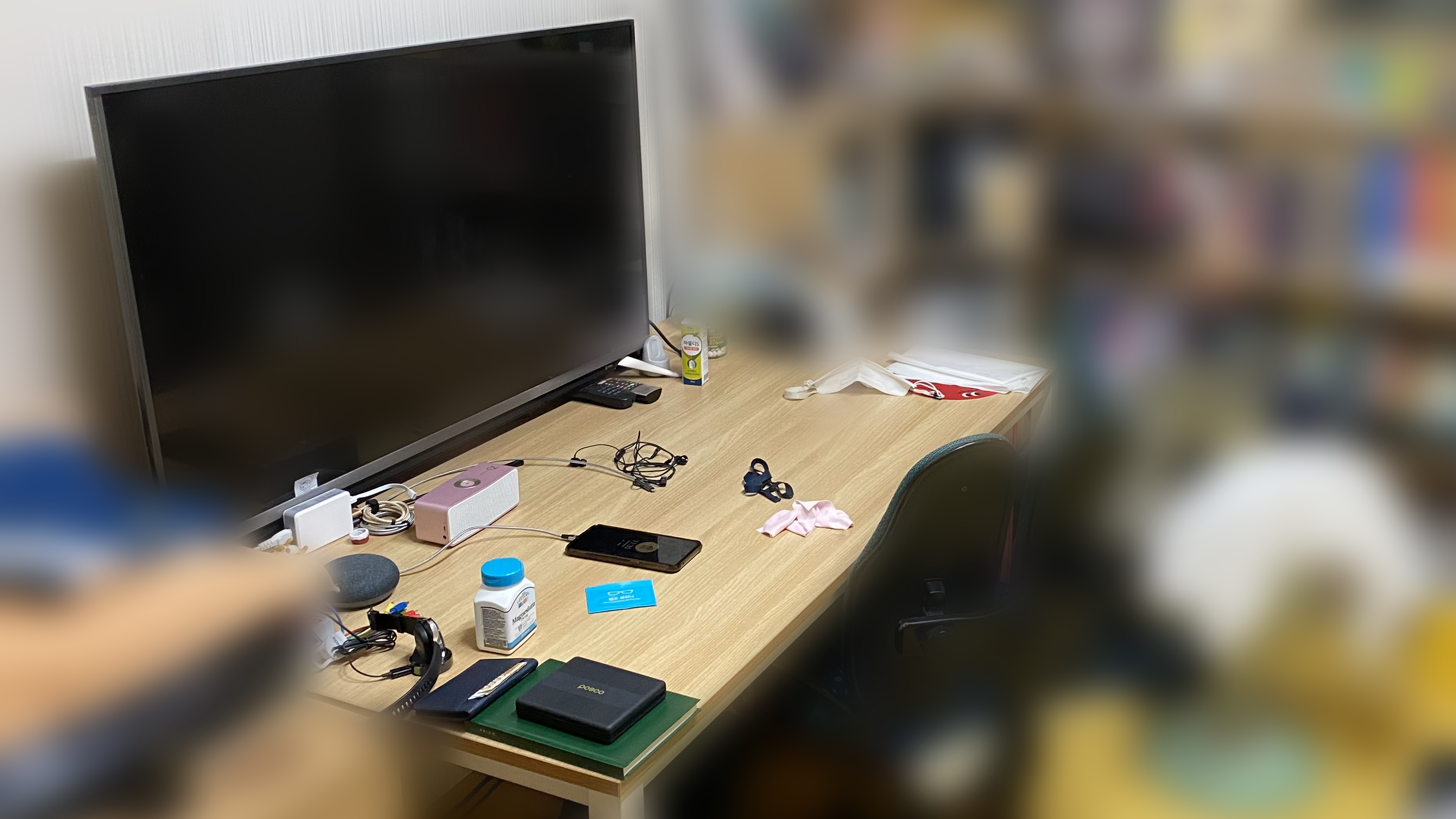 예전에 미팅으로 파트너사 갔다가 대형 TV를 개인별 모니터로 쓰는 걸 보고 감명을 받아, 한때 "55인치 UHD TV"를 모니터 대용으로 썼었다. 하지만 상상으로 끝냈어야 하는 걸 현실로 만든 덕분에, 어마무시한 책상 위 점유율을 자랑하는 TV와 함께 대-재앙이 시작 되었다. (사실상 스불재😱)