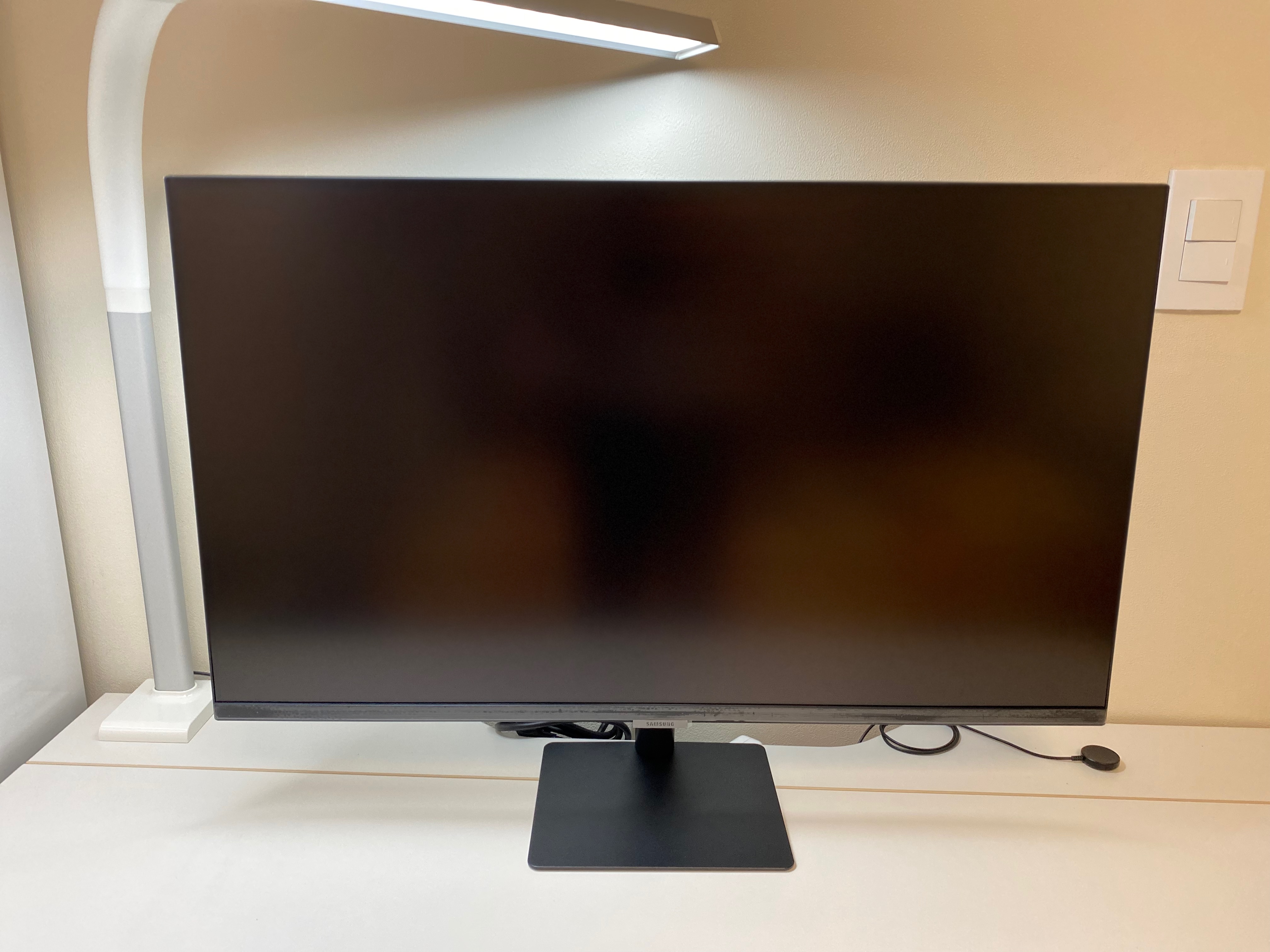"스탠드"는 생각보다 매우 얇았다. 사실 끝까지 (의리 때문에?) LG 모델도 고민했지만, 결국 [스마트모니터 M7]를 고른 큰 이유 중 하나는 "스탠드" 때문이라고 해도 과언이 아닐 것 같다. LG 모델도 나름 커브(curved) 디자인이 매력적이긴 했지만, 반경이 넓고 두꺼워서 책상 위 공간을 상대적으로 많이 차지한다는 점이 큰 고민이었다.