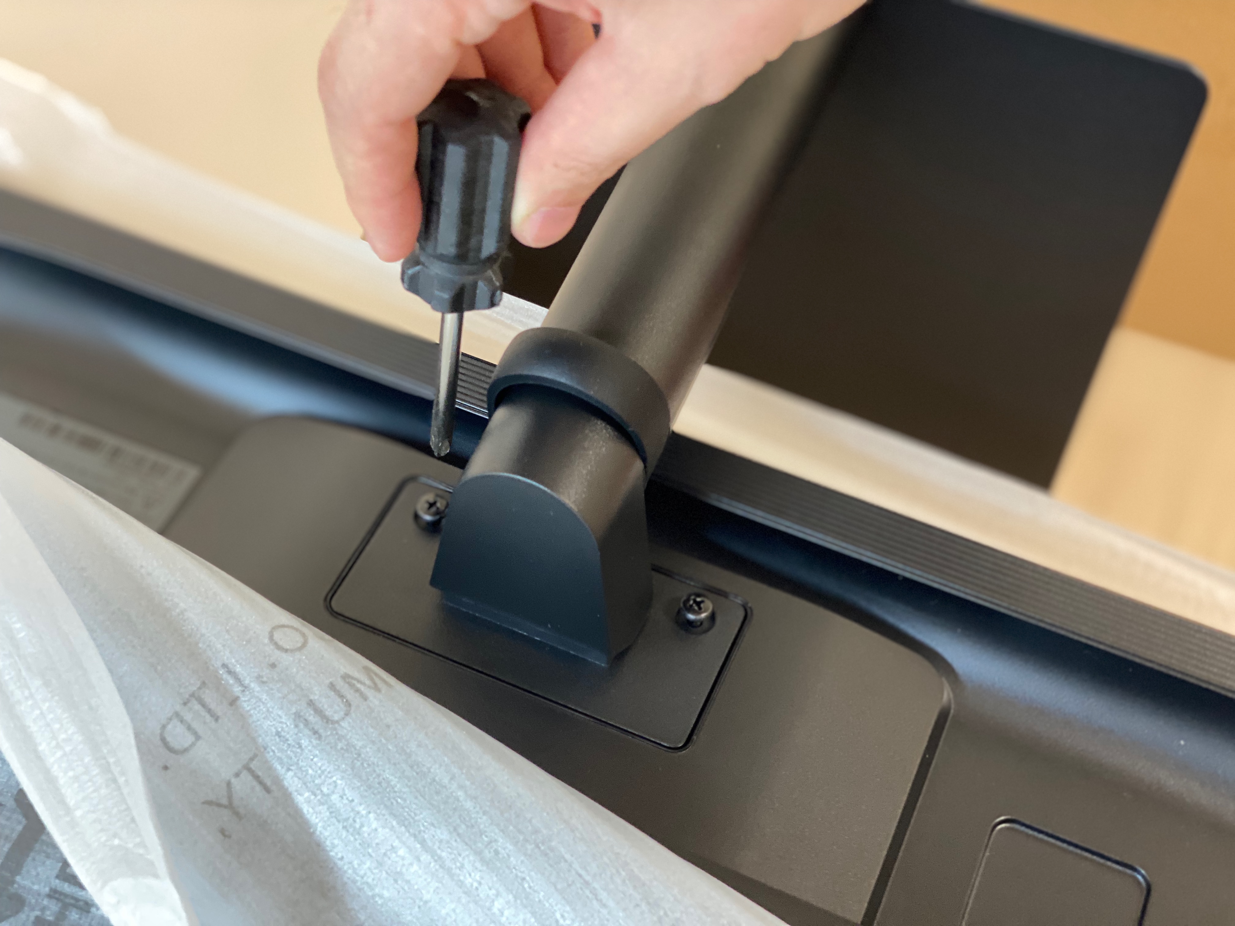 "스탠드"와 "디스플레이" 결합은 "나사(스크류)"로 이루어지는데, 생각보다 빡빡하기도 했고 모니터가 워낙 얇기 때문에 혹시 힘을 너무 세게 주면 안될 것 같아 조금은 아슬아슬하게 조립했다.
