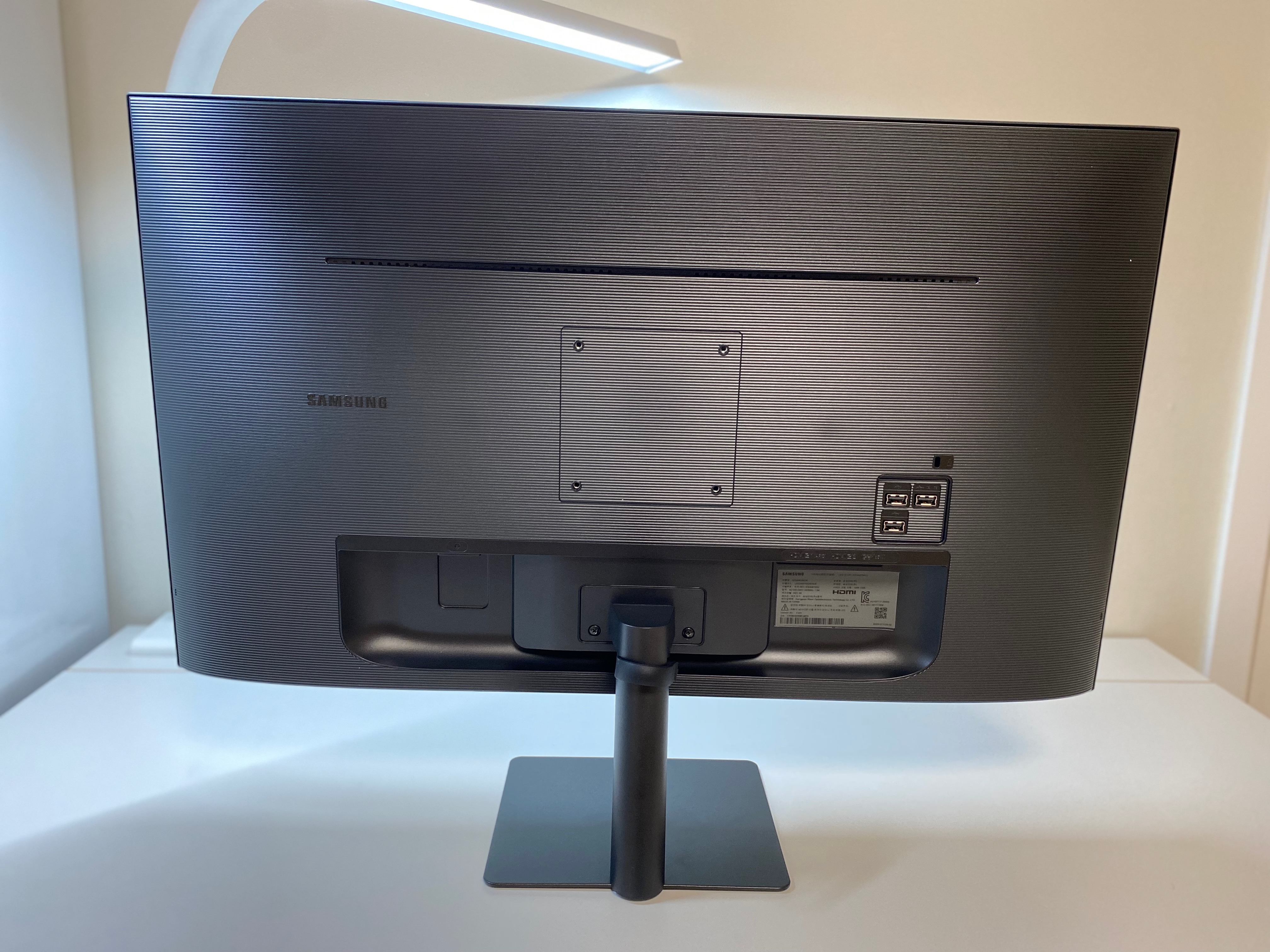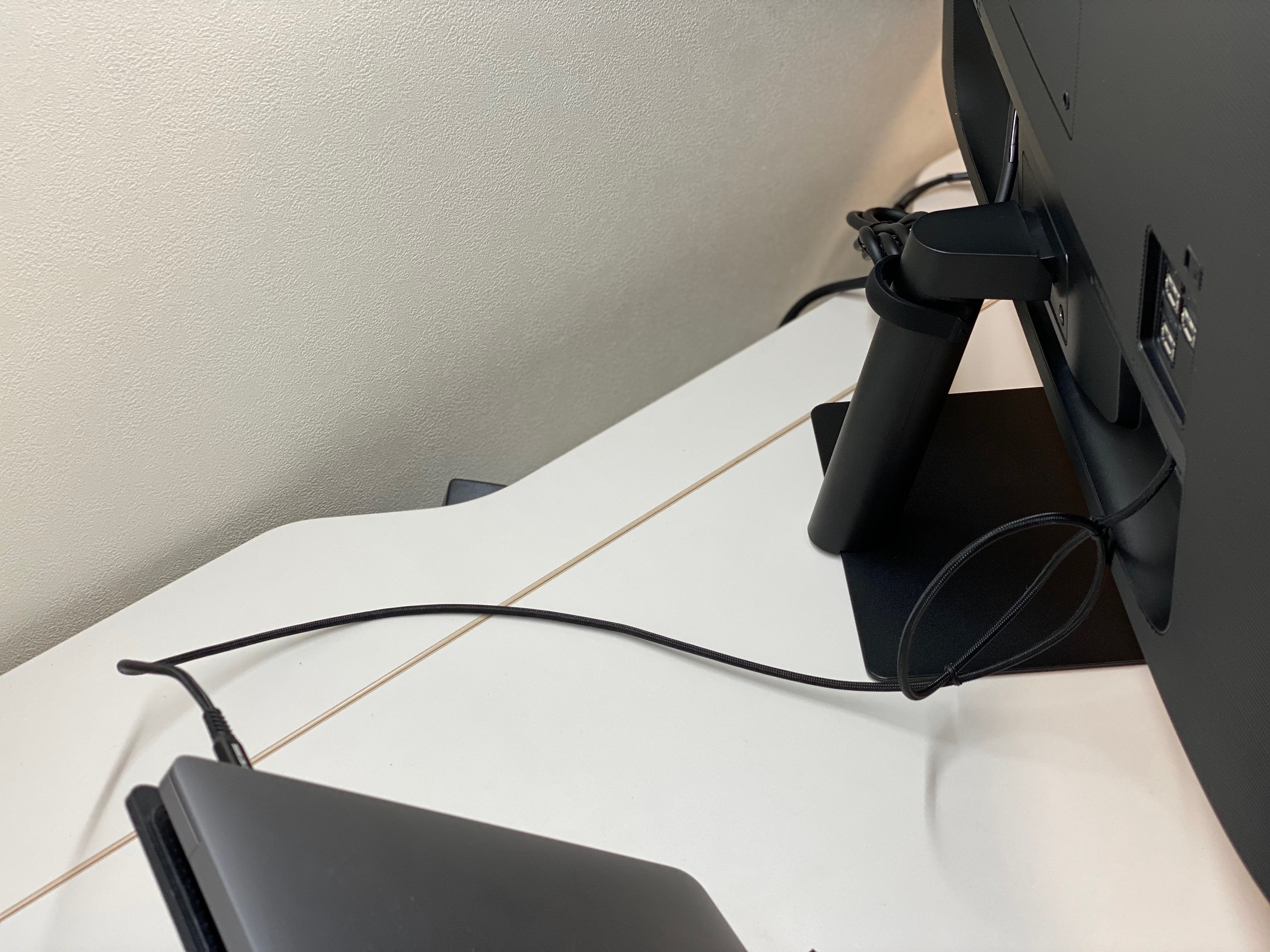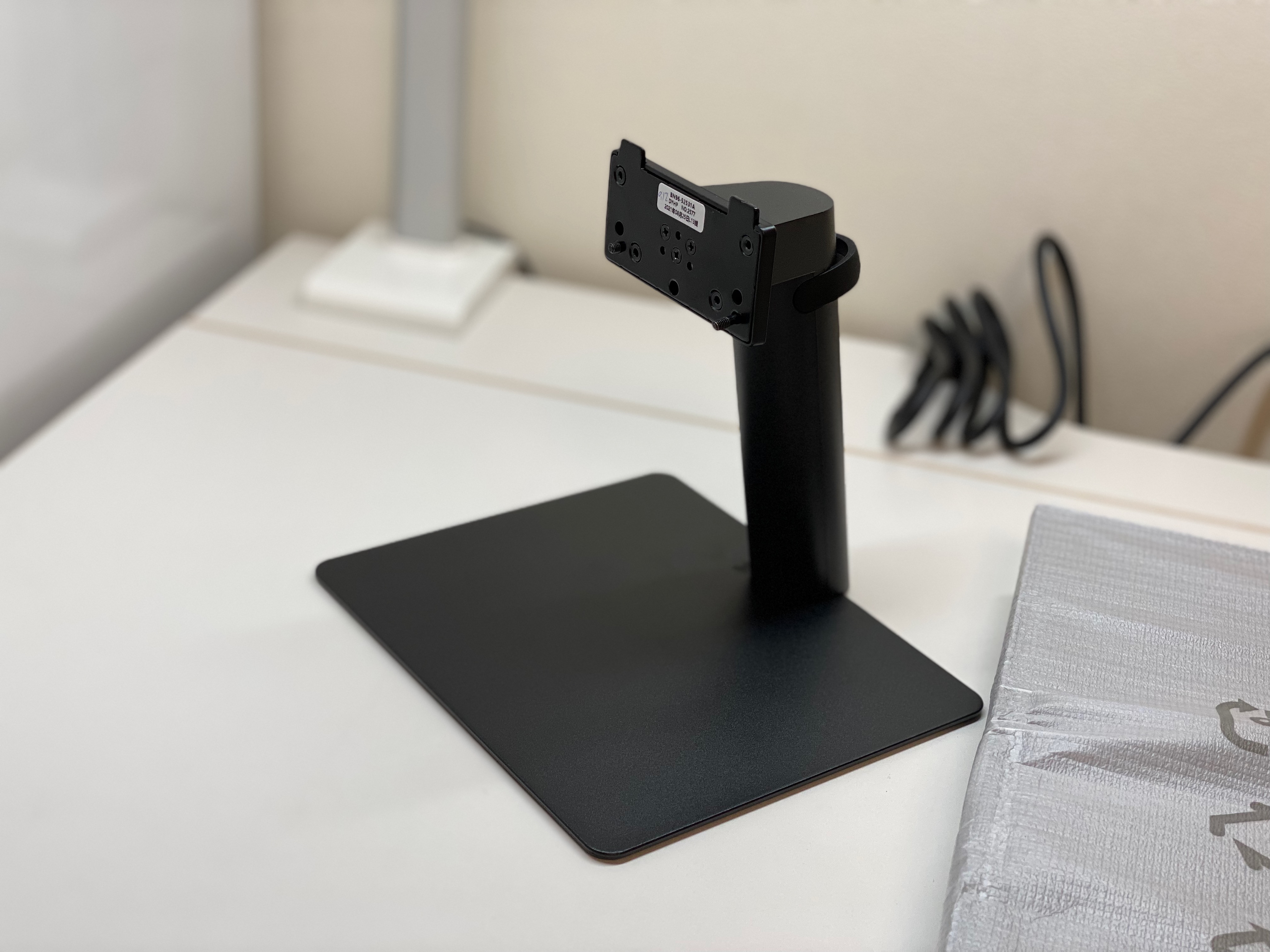 "스탠드"는 생각보다 매우 얇았다. 사실 끝까지 (의리 때문에?) LG 모델도 고민했지만, 결국 [스마트모니터 M7]를 고른 큰 이유 중 하나는 "스탠드" 때문이라고 해도 과언이 아닐 것 같다. LG 모델도 나름 커브(curved) 디자인이 매력적이긴 했지만, 반경이 넓고 두꺼워서 책상 위 공간을 상대적으로 많이 차지한다는 점이 큰 고민이었다.