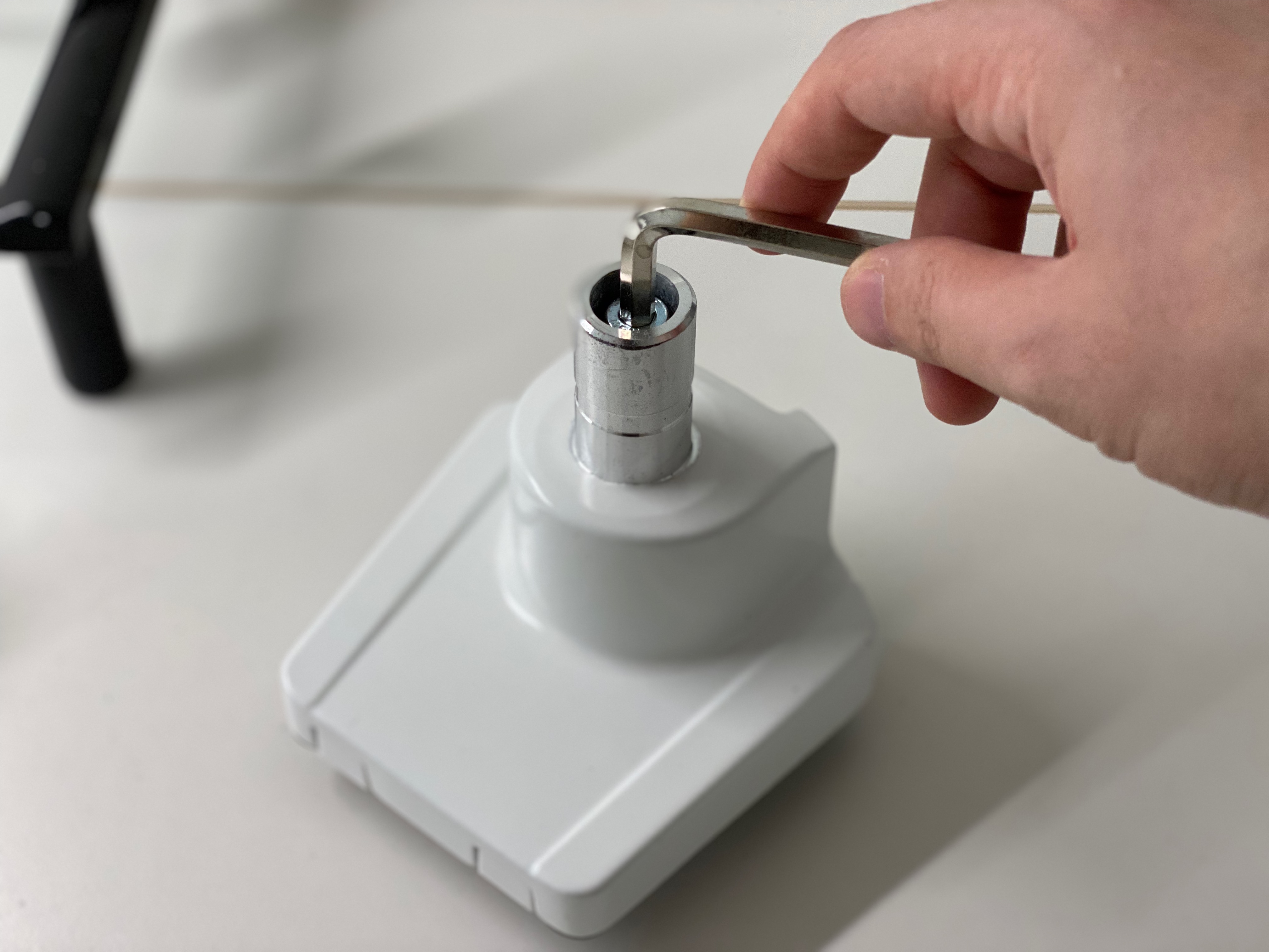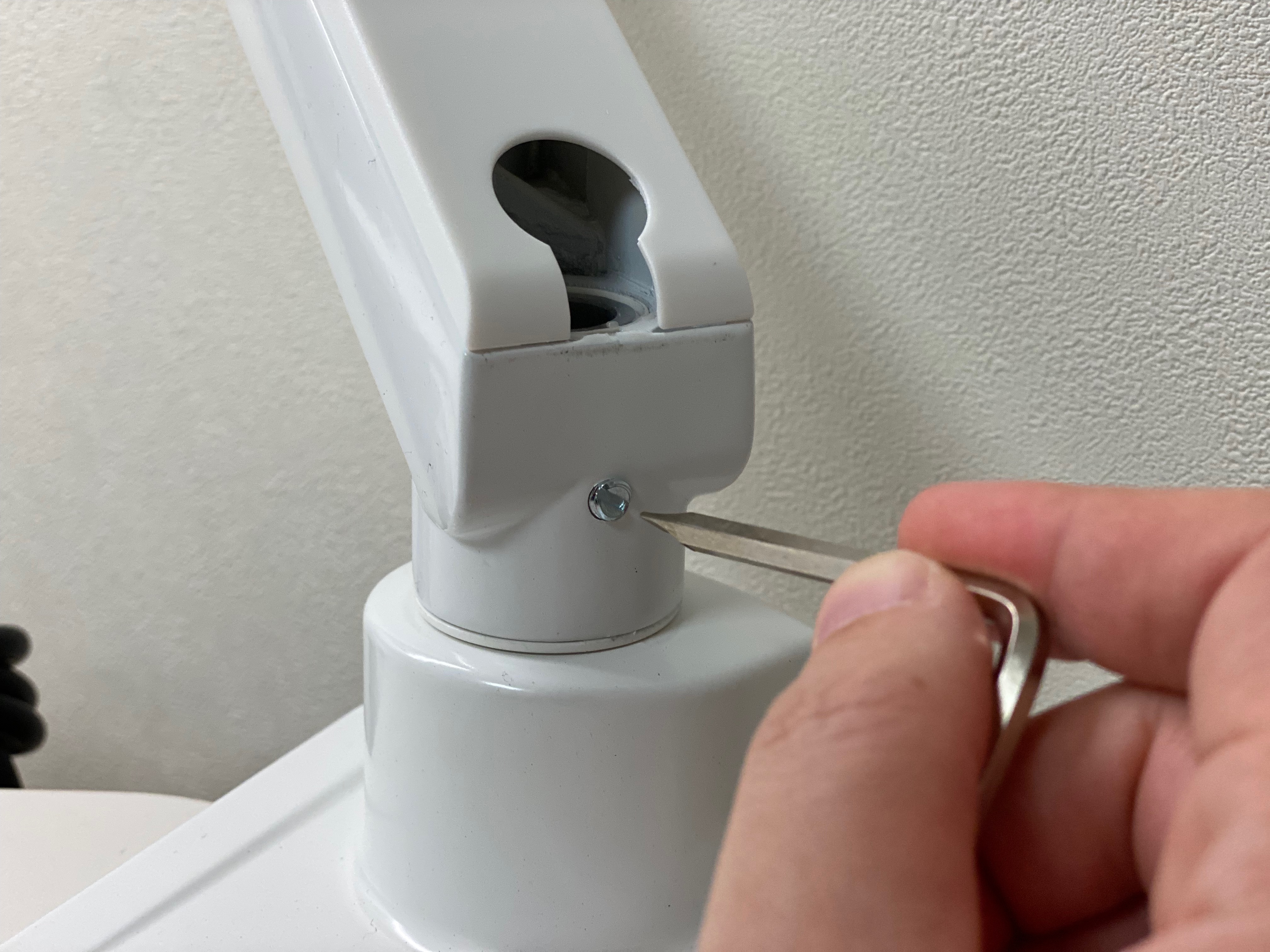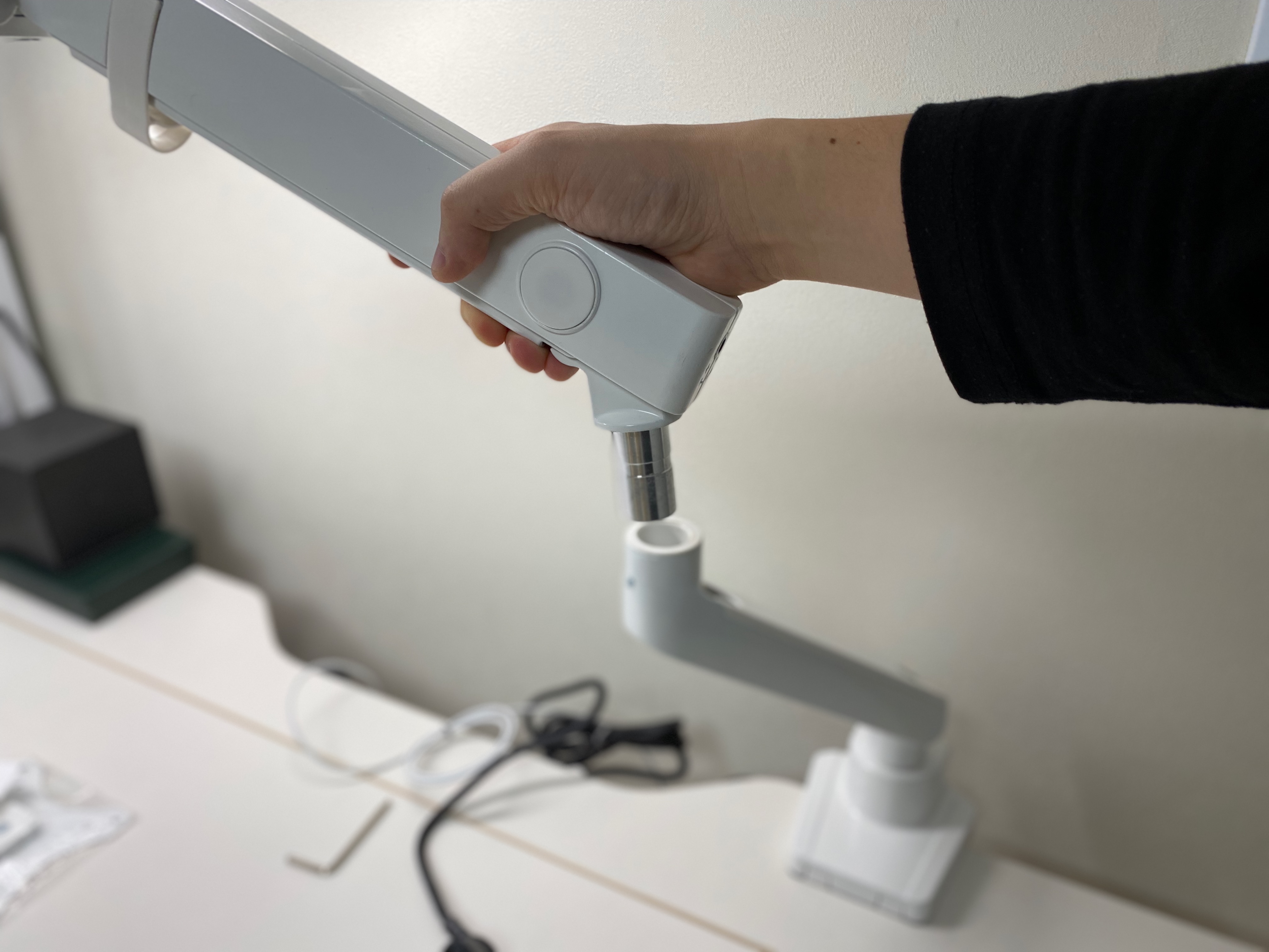 이어서 "②2개의 암"인 "1차암(클램프-2차암 연결)"과 "2차암(1차암-브라켓 연결, 위/아래 조정 기능)"을 차례로 체결해 준다. 패키지에 들어있는 얇은 일자(一) 드라이버로 조이는데, 너무 세게 조이면 회전이 힘들고 너무 헐겁게 하면 모니터 연결시 무게 때문에 들리거나 분리될 수 있기 때문에 조금씩 조여가며 빡빡한 정도를 보는 것이 좋다.