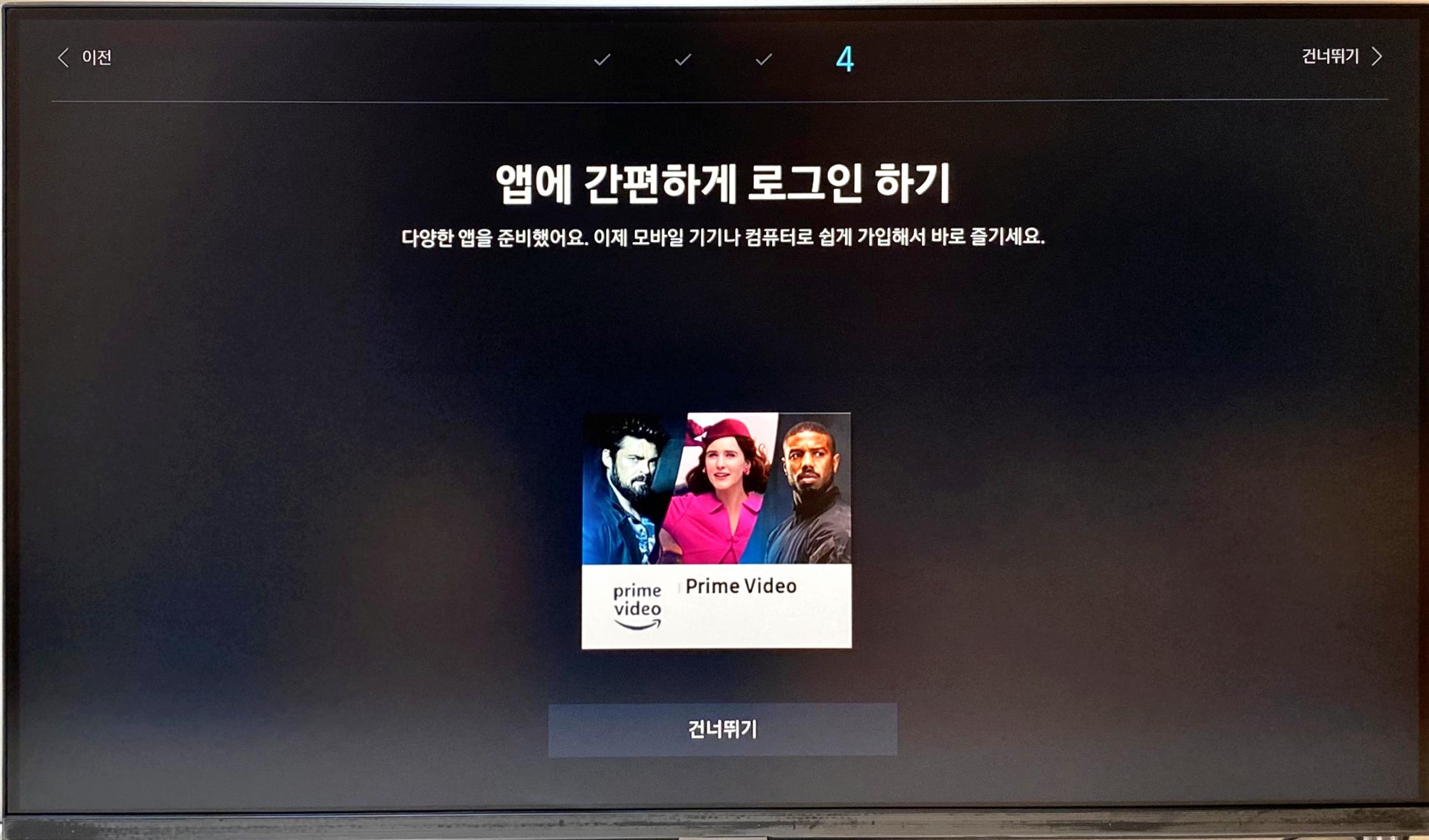 이어서 [스마트모니터 M7]에서 사용할 수 있는 OTT 서비스 중 하나인 [Prime Video]를 바로 로그인 할 수 있도록 제공한다. (나는 'Prime Video'를 쓰고 있지 않아 Pass 했지만, 얼마나 간편하게 UX를 만들어 놨는지는 꽤 궁금했음)