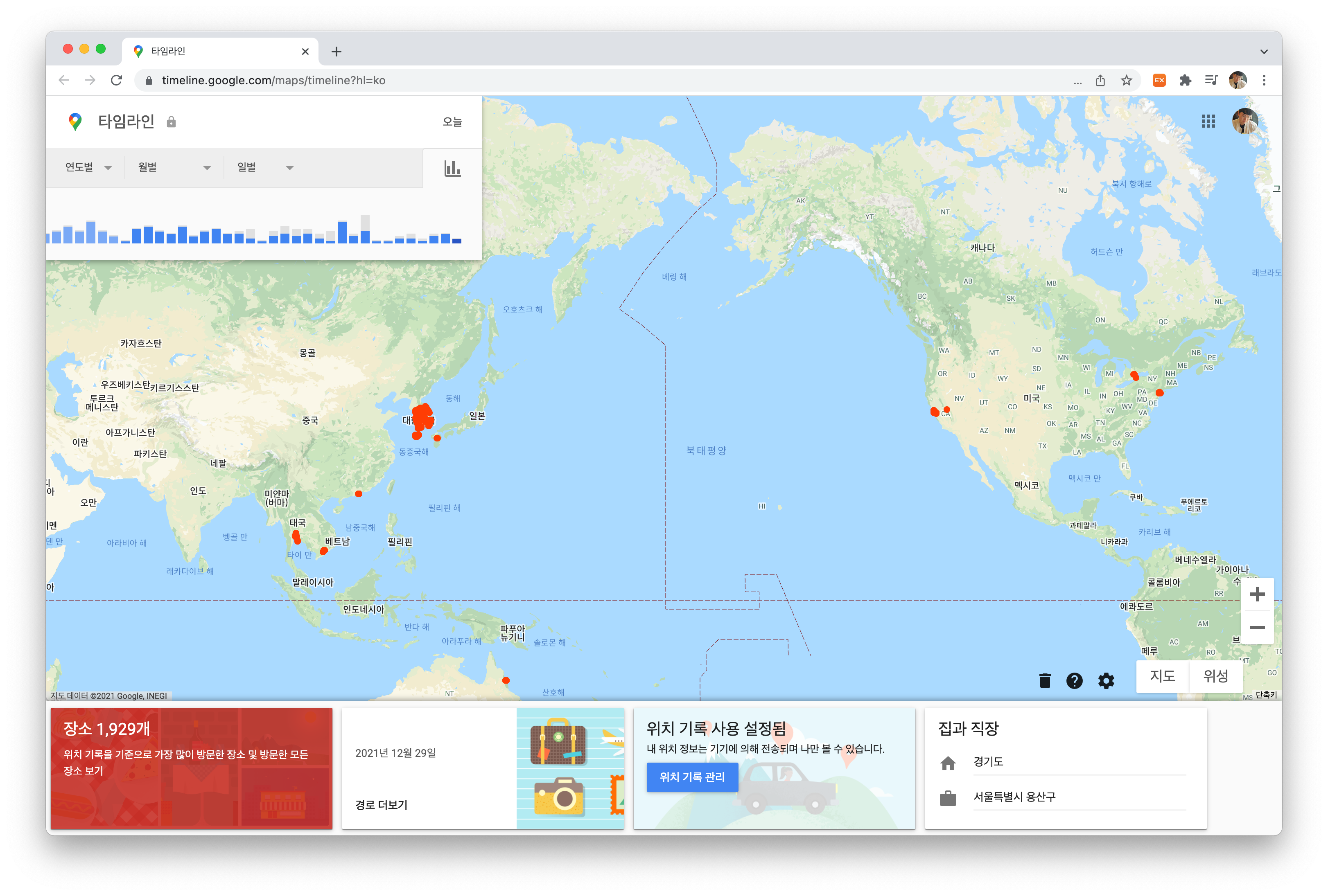 내가 어딜 가는지 항상 기록되고 있기 때문에 조금은 쎄~할 수 있지만, 국내나 해외여행을 갈 때에는 너무나도 유용한 기능이라고 생각한다. 가끔 타임라인을 켜놓고 내가 여기에 갔었구나~를 추억하면 재미있기 때문에😆