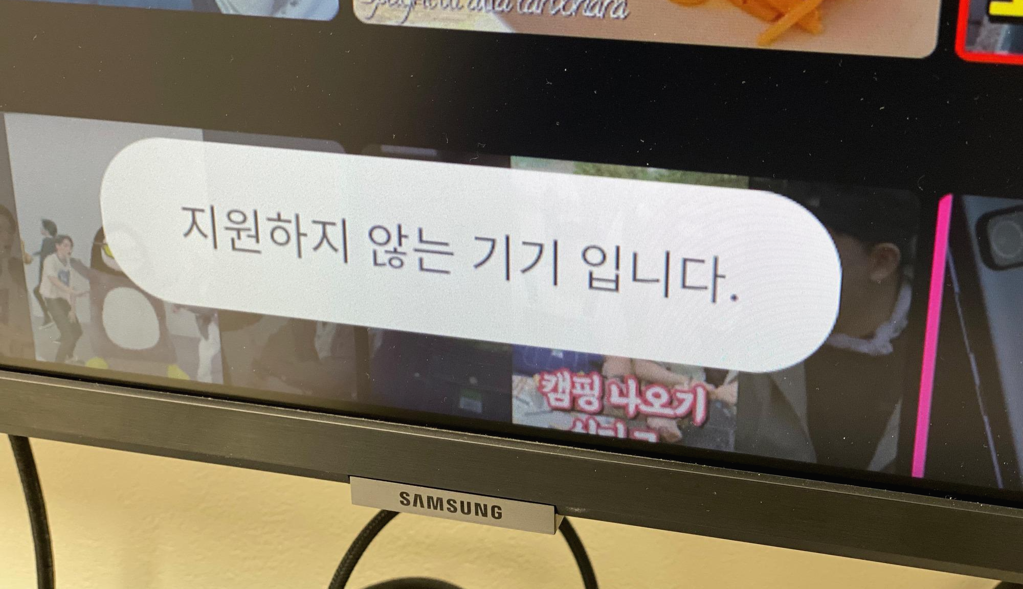 하지만, 앱을 실행할 수는 있지만 "지원하지 않는 기기 입니다."는 짧은 메시지만 톡 튀어나오고 끝!이라는 사실😭