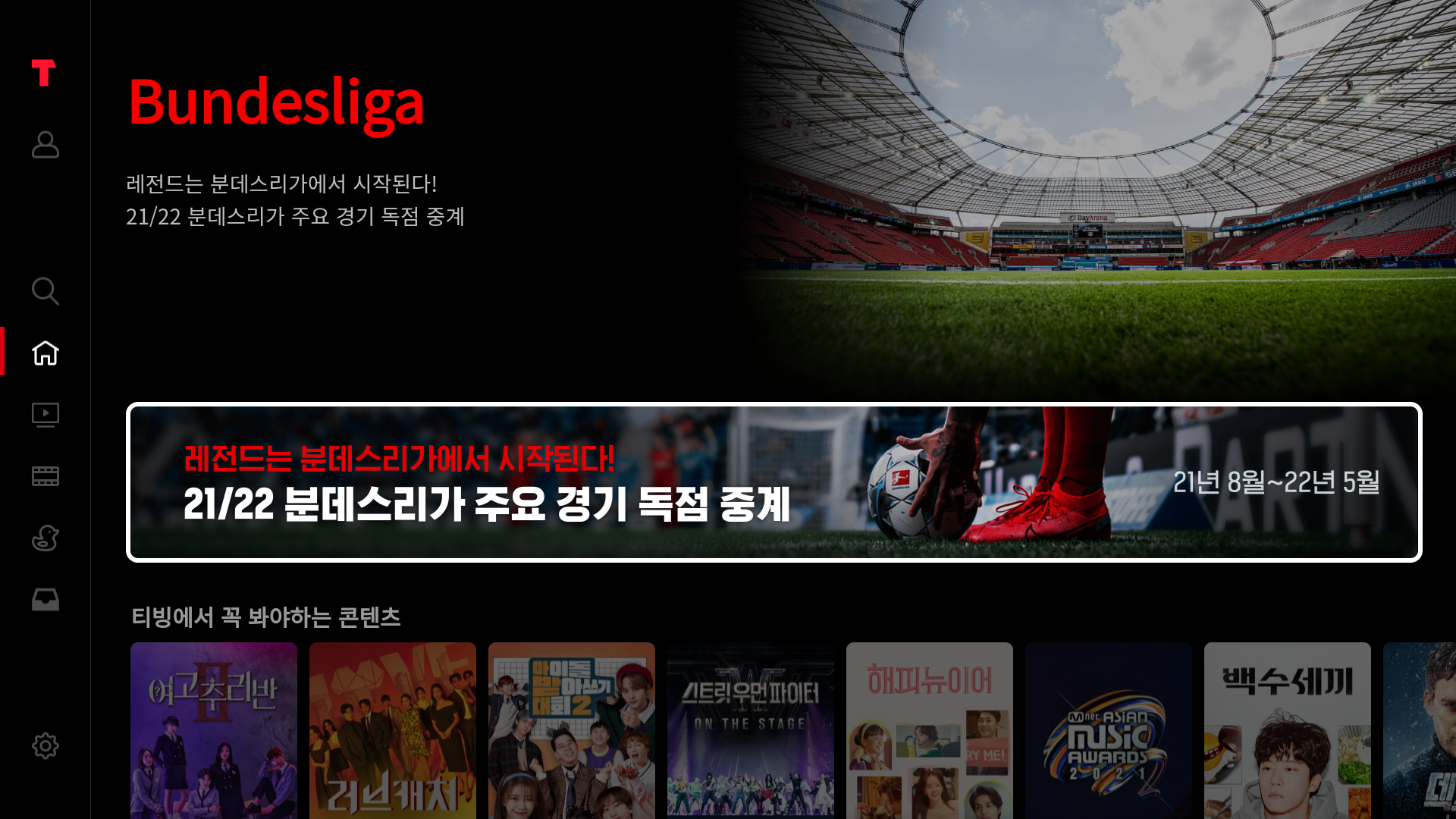 모~든 안드로이드TV OS 기기에서 티빙(TVING) 앱을 공식적으로 쓸 수 있게 되었다고 한다!