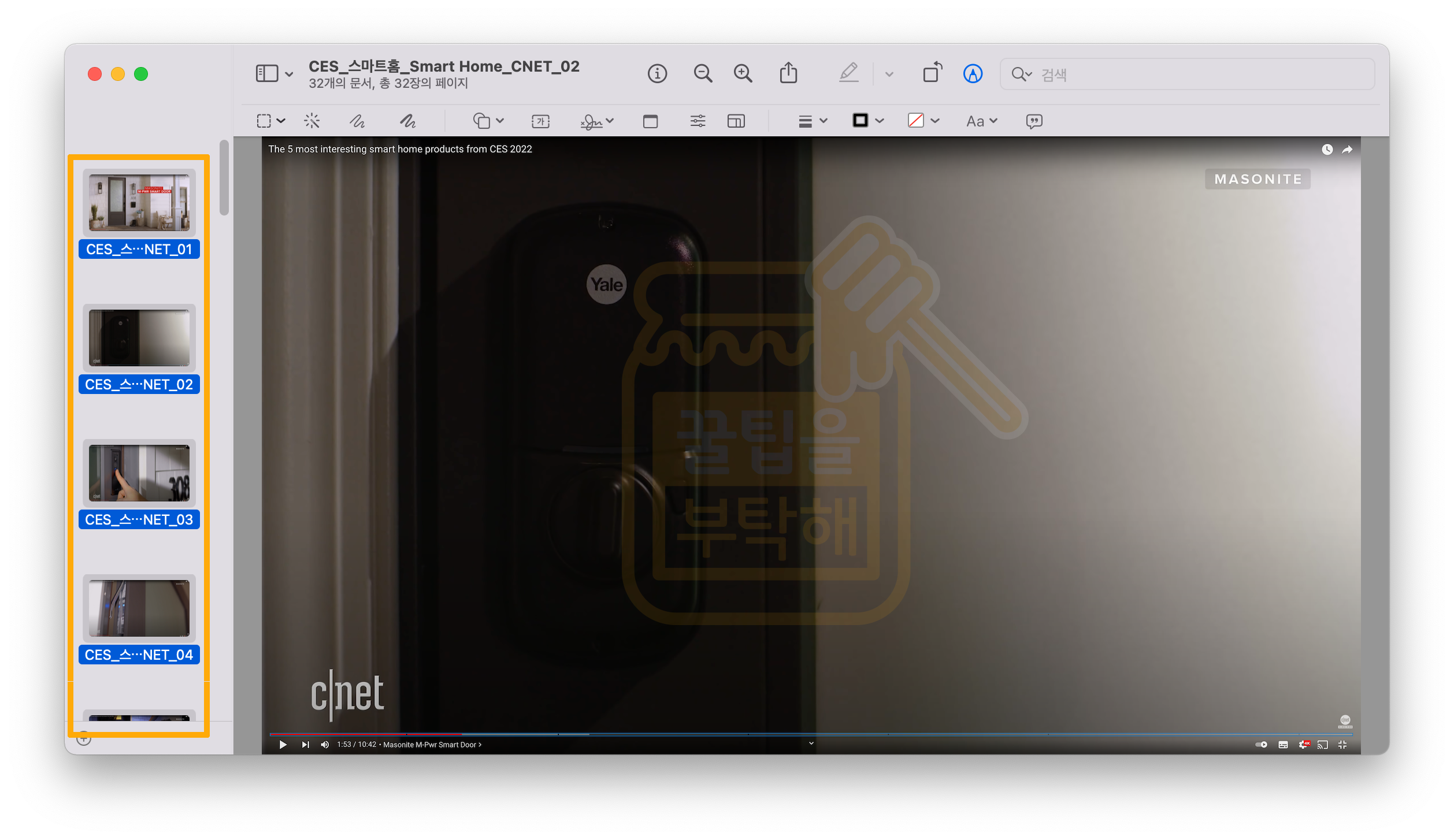 2. '미리보기' 창이 뜨면 왼쪽에 있는 썸네일들을 모두 선택한다. (맨 위 썸네일을 선택하고 [command]+[A]를 누르거나, 마우스를 끌어당겨 선택할 수 있음)