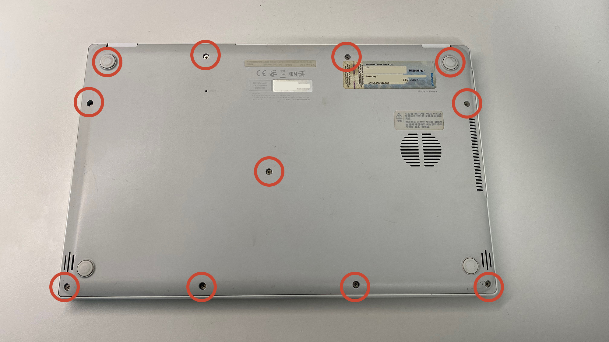 사실 SSD 교체는, 하판을 뜯어내고 기존 HDD 자리에 SSD만 넣으면 되기 때문에 크게 까다롭거나 어렵지 않다.다만, 오래된 노트북의 경우 특성상 플라스틱 부분(하우징)이 약해져 있고 분해하면서 예상치 못한 변수들이 많기 때문에 더 섬세하게 해야한다. (나중에 설명하겠지만 나는 디스플레이를 날려버릴 뻔 했음)