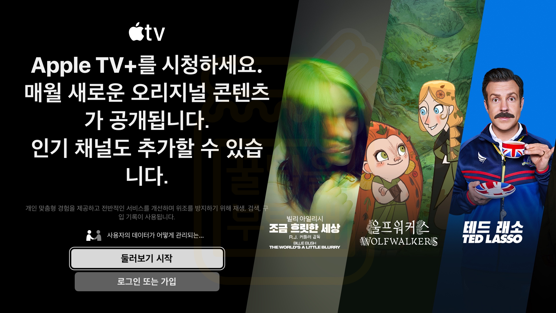3) 로그인을 하면(또는 둘러보기도 가능) 정상적으로 '애플TV' 앱의 홈 화면을 볼 수 있다.