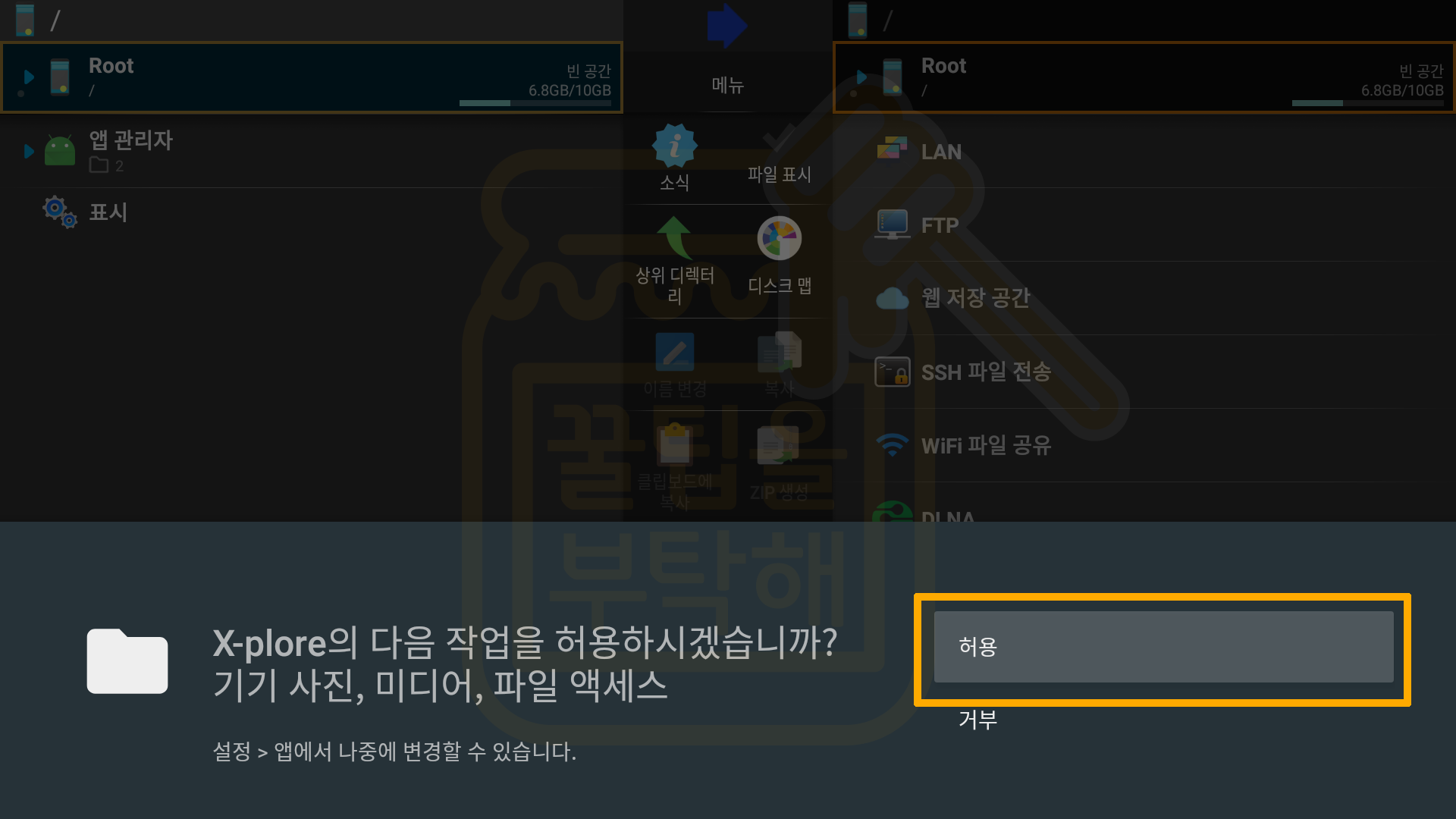 6) 앱을 최초로 실행하면 '작업 허용' 안내창이 표시됩니다. [허용]을 누릅니다.