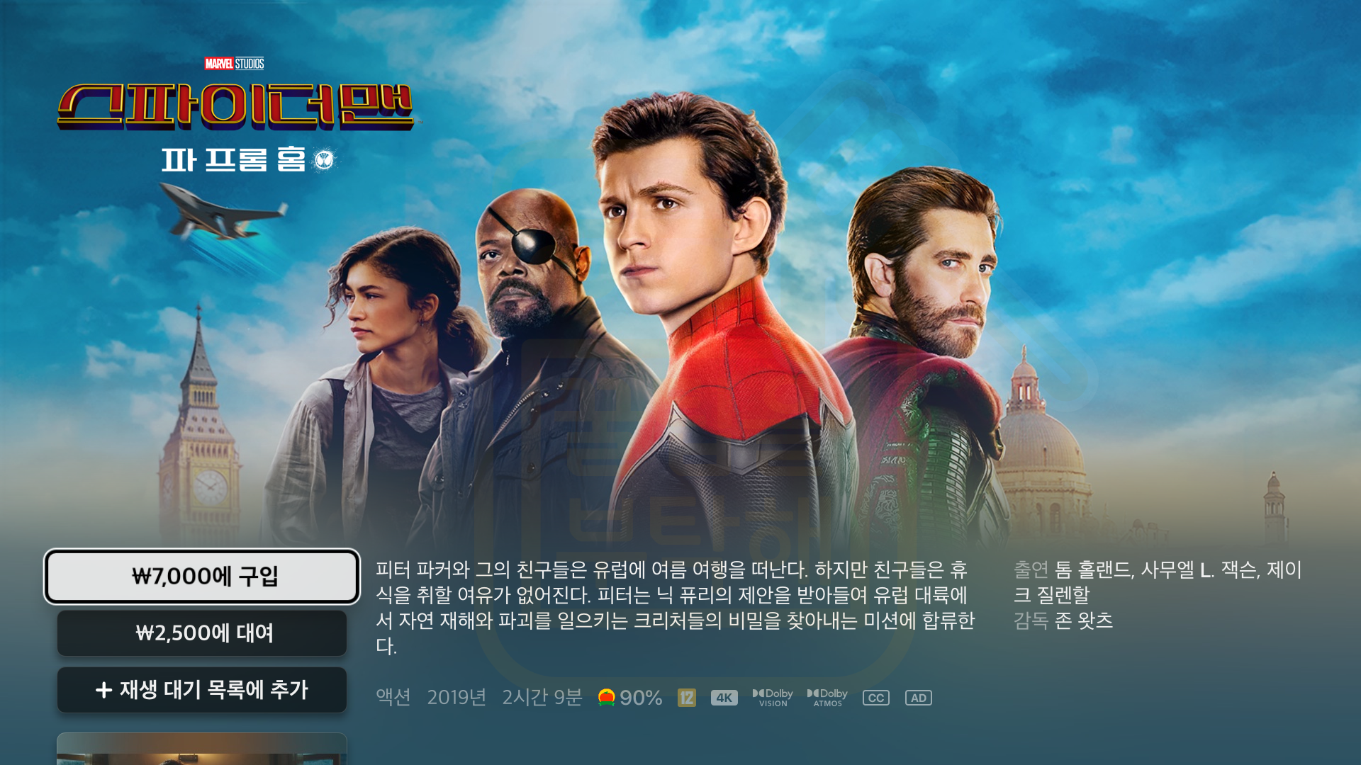 4) 시청하고 싶은 콘텐츠를 선택하면 해당 콘텐츠의 상세화면으로 이동한다. 구입 또는 대여를 하면 본인의 애플 계정과 연결된 결제수단으로 결제되며 바로 시청이 가능해진다.