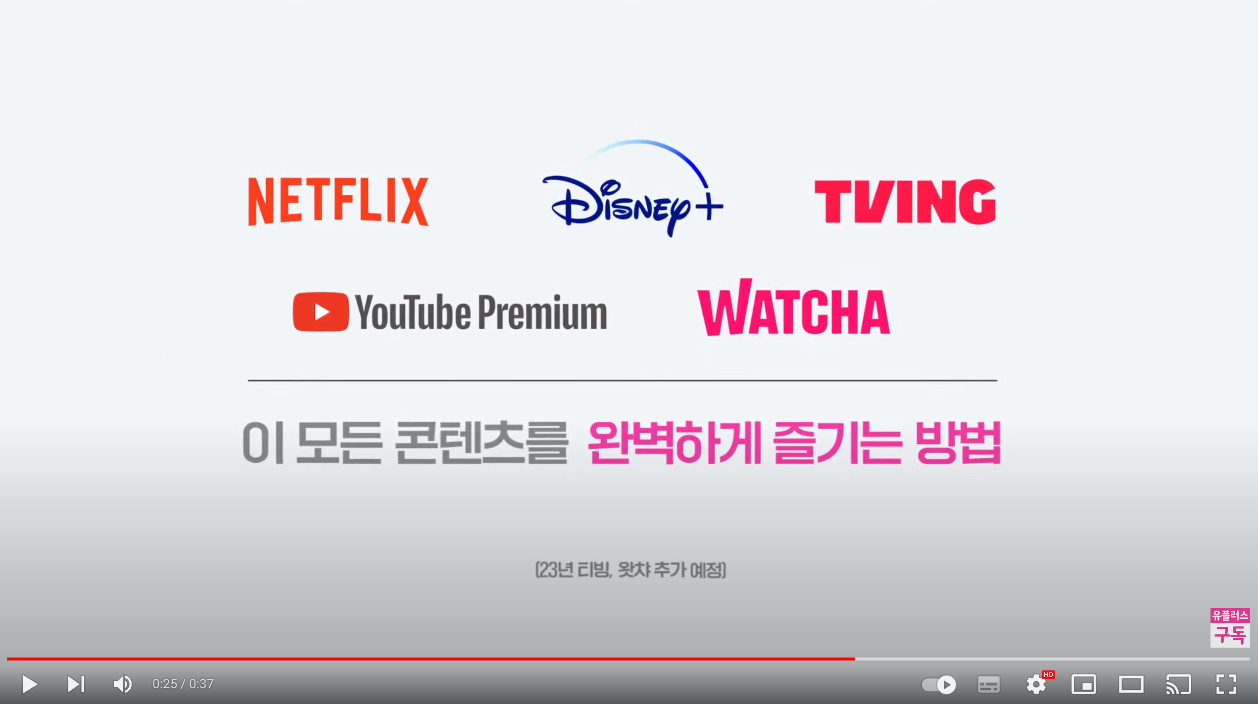 유튜브, 디즈니플러스, 넷플릭스, 티빙, 웨이브 ... 등등