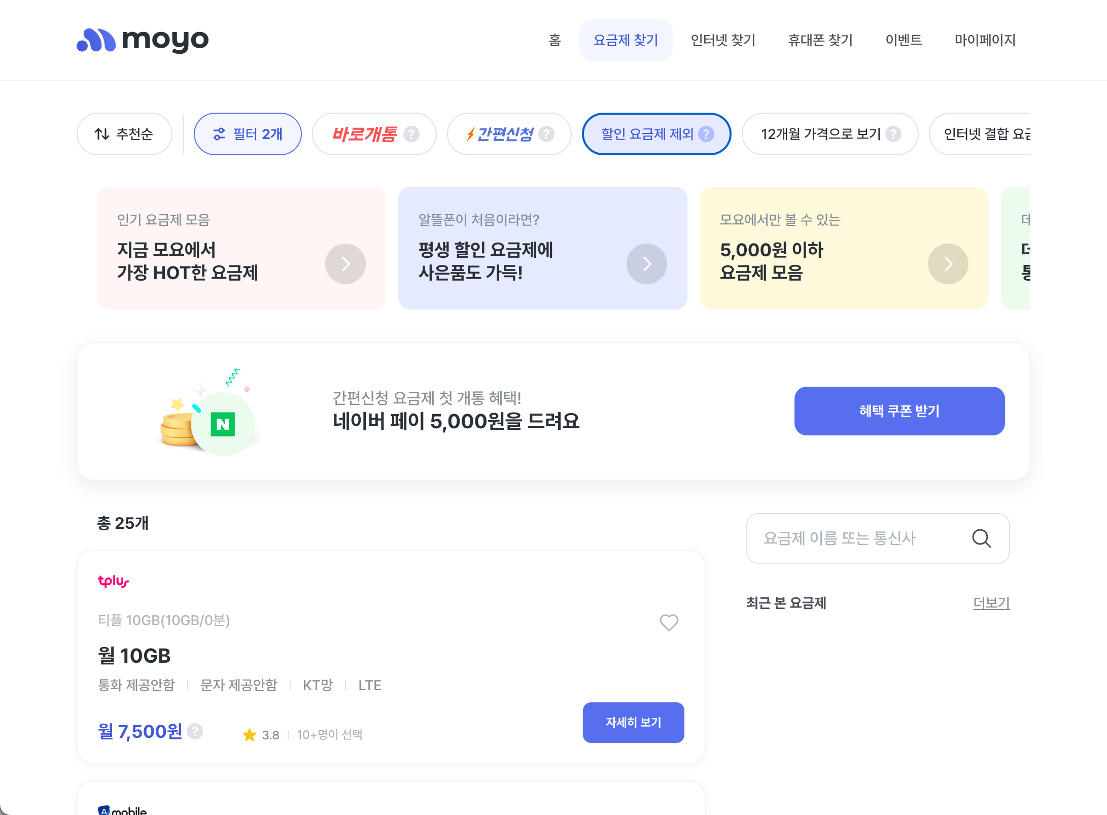 알뜰폰 업체도 많고 요금제도 다양하기 때문에 어떤 요금제가 나에게 맞을지(사실 가장 저렴할지🤣) 찾기 어려울 수 있는데, 나는 알뜰폰 요금제 비교 사이트인 "모두의 요금"(www.moyoplan.com)을 이용해 보았다.