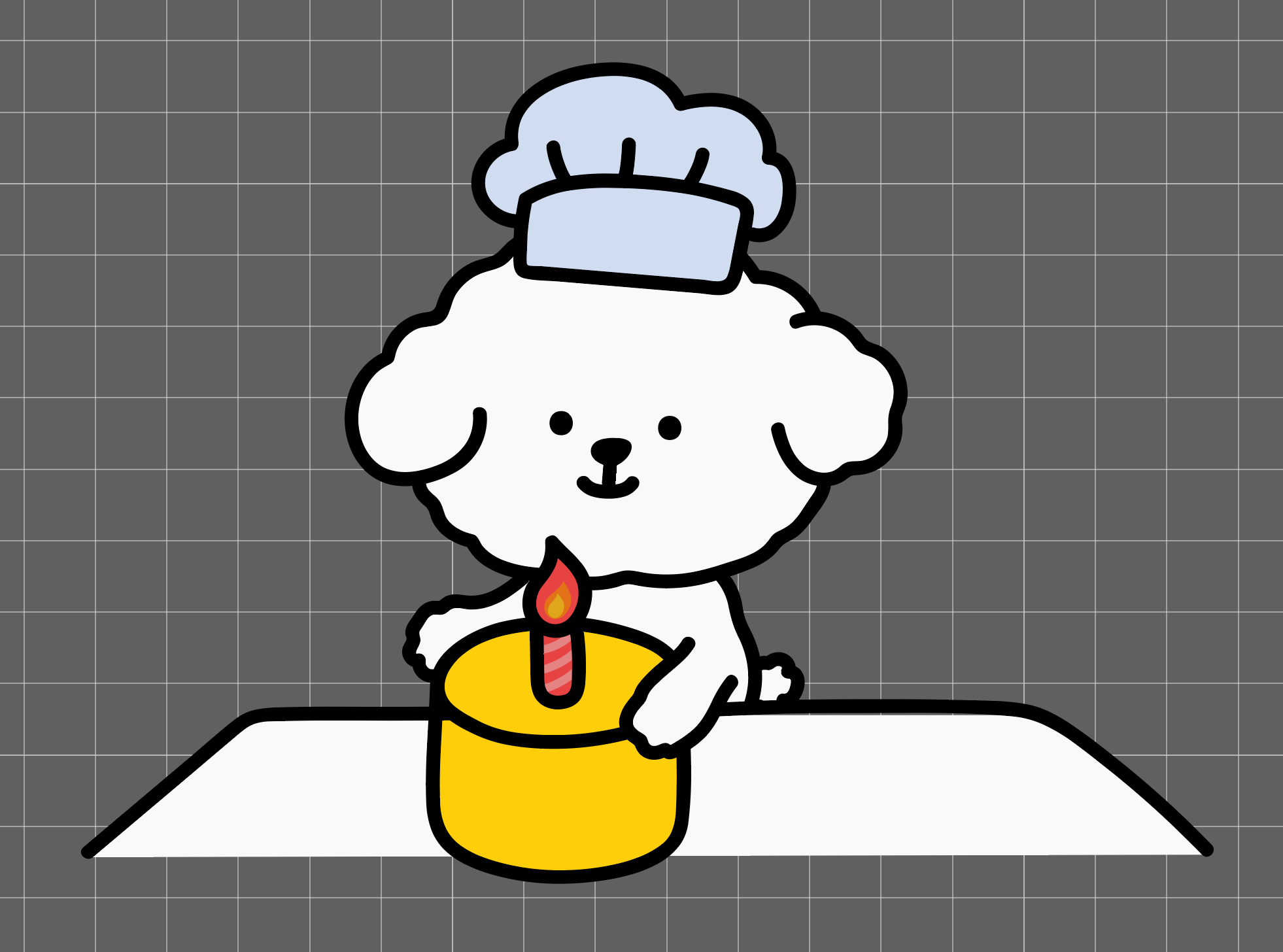 "요리하는 강아지 쉐프"라는 콘셉트로 새로운 강아지 캐릭터를 디자인.